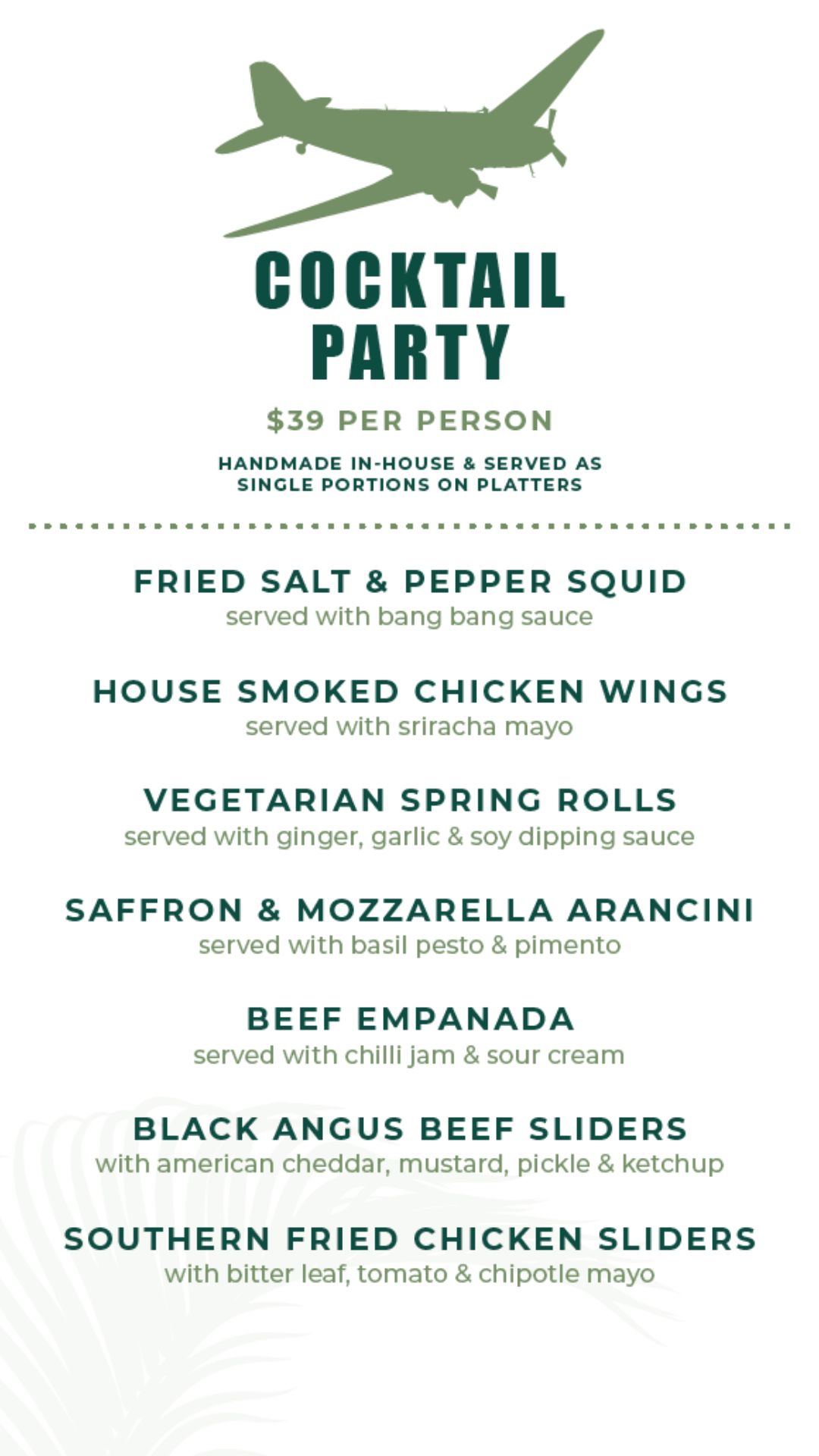 You can select from the attached function menus, most of which will change seasonally. Groups of 15 or less may also choose to simply order from our current A la Carte blackboard menu if they prefer.